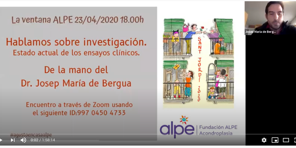 El pasado día 23 de abril asistimos al encuentro, a través de Zoom, de la Ventana ALPE, con el Dr. Josep María de Bergua.