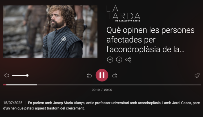 Esther Vives (presidenta) y Belinda Sánchez (secretaria) de AFAPAC participaron en una entrevista en SER Catalunya para hablar sobre las dificultades que afrontan las personas con acondroplasia y otras displasias…